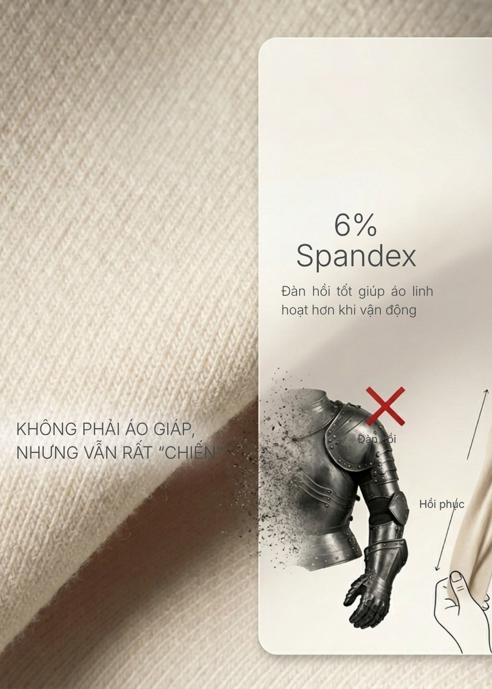 Đã tính toán kỹ rồi bạn ạ. Lỗ xỏ được khoét rộng hơn và viền thun mềm, cộng với tay áo Raglan dài hơn bình thường để khi vươn tay, vải không bị căng ngược lại. Cảm giác đeo rất êm.