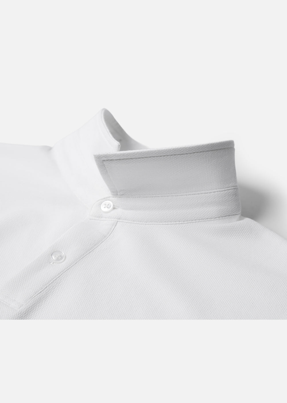 - Chi tiết: Cổ áo có chân (Stand Collar) được ép keo lụa gia cố bên trong. Giúp lá cổ luôn đứng và phẳng như một chiếc sơ mi công sở, không bị rũ hay quăn mép sau thời gian dài sử dụng.