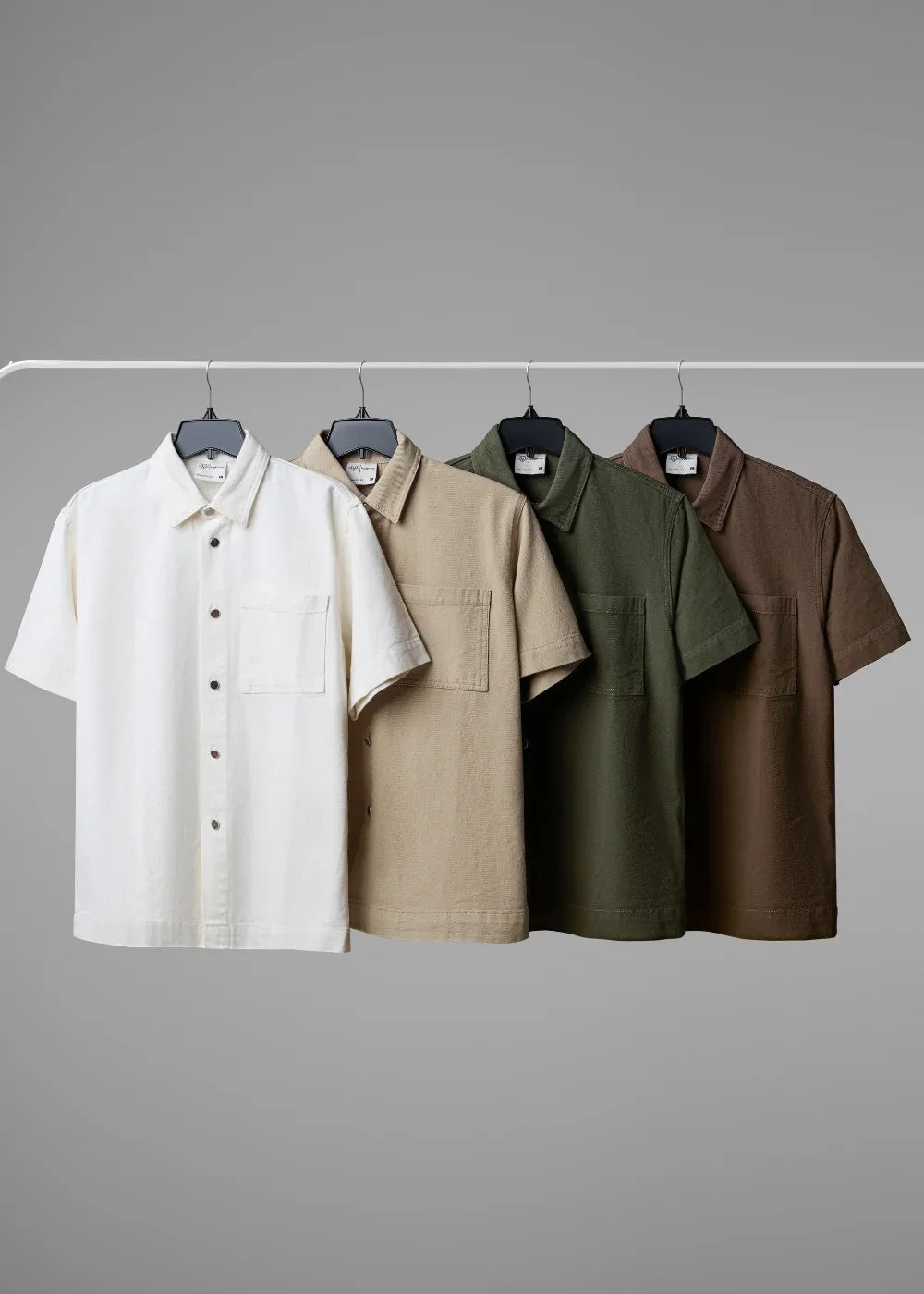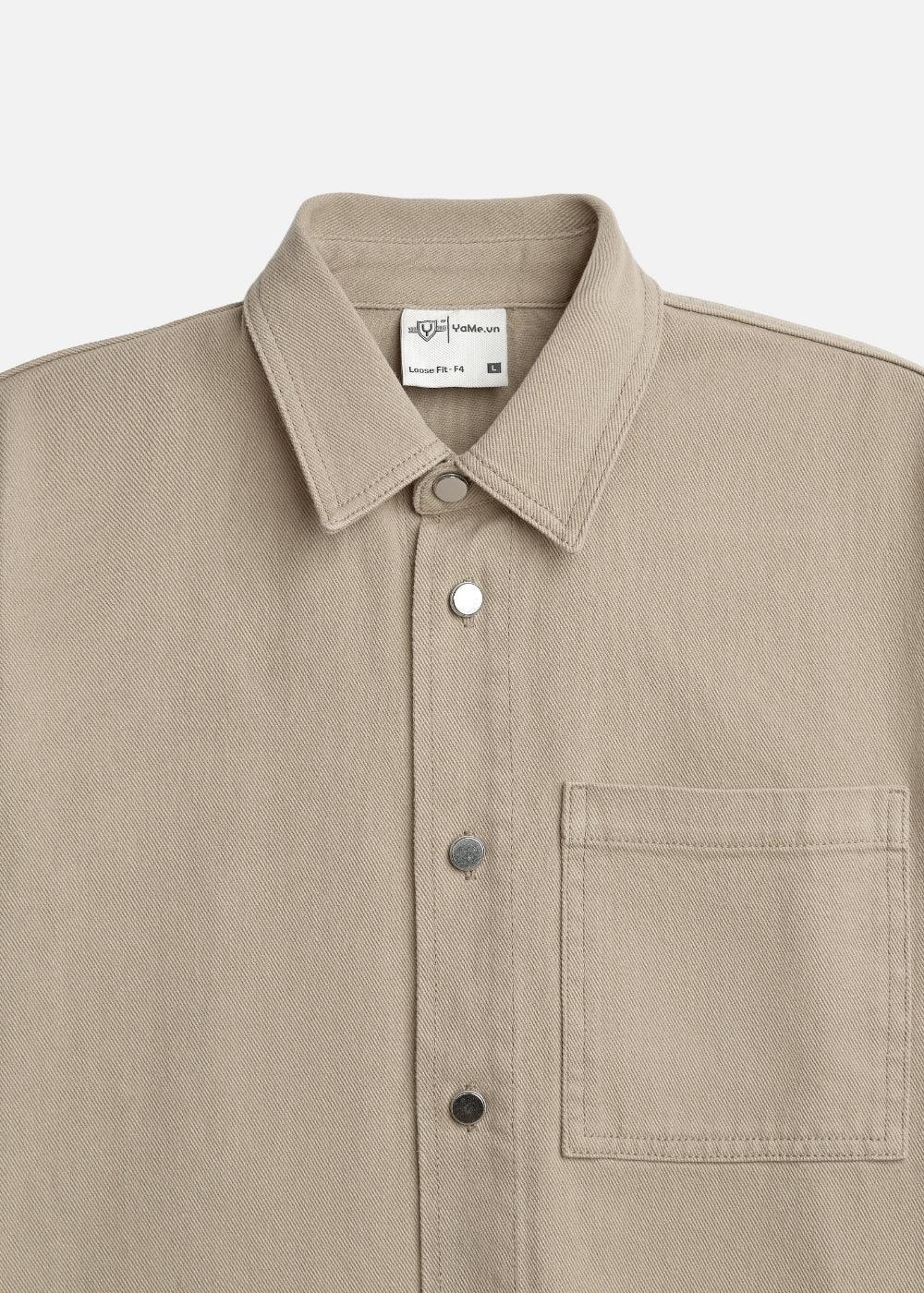 Áo Sơ Mi Tay Ngắn Dáng Giấu Bụng DurableTex™ Vải Dày Dặn Đứng Form Multi Color Jean 003 Màu Nâu Nhạt Dáng Rộng Rãi F4