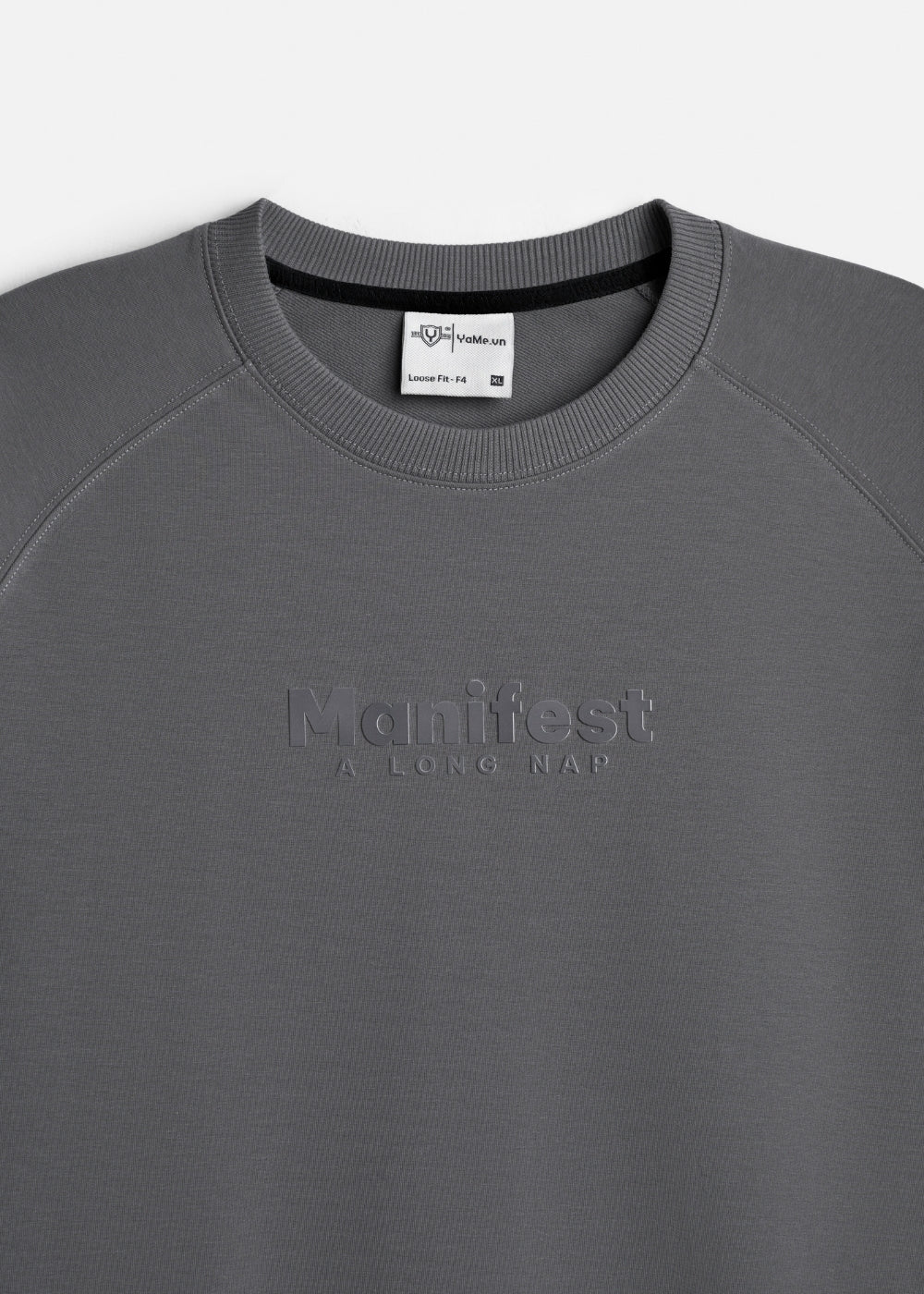 Áo Thun Dáng Vuông Vai Raglan CloudTouch™ Vải Êm Ái In Chữ In Nổi The No Style 204 Màu Xám Đậm Dáng Rộng Rãi F4